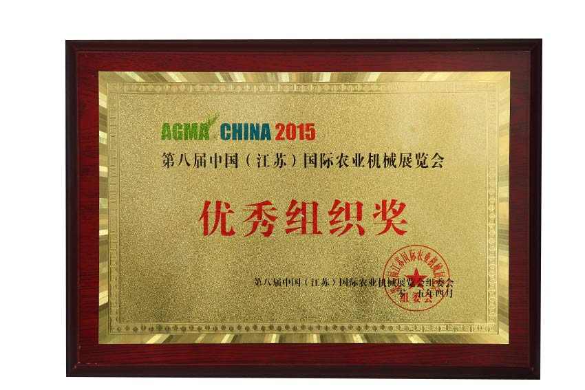 The Eighth China (Jiangsu) International Agricultural Machinery Exhibition outstanding organization award
