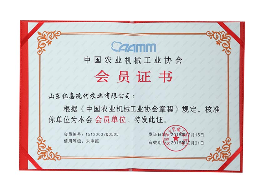 Member certificate of China Agricultural Machinery Industry Association