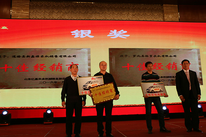 To thank the vast number of dealers, suppliers of billion Jiadi Ao support and development, business site also awarded "top ten dealers award 1 (prizes for Jianghuai refine the high-grade commercial)," top ten dealers silver two (prizes for Wuling Rongguang s high-end business car), top ten dealers seven (prizes for five furrow of hydraulic turnover plow) and top ten outstanding providers, 10 (prizes for high-grade leather box).
