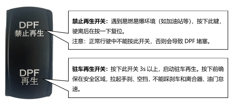 除非發(fā)生危害車輛或人員安全的特殊情況,這時才可長按 DPF再生開關(guān)超過3秒,即可退出駐車再生。