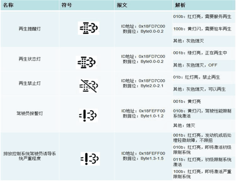 附件:儀表盤后處理指示燈顯示狀態(tài)表: