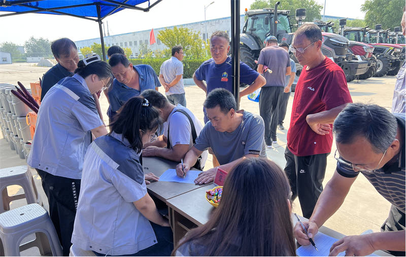 8月,立秋節(jié)氣,農(nóng)作物成熟的氣息越來越濃,一個即將豐收的季節(jié)撲面而來,也是傳統(tǒng)農(nóng)機銷售、煥新的好時機,不少用戶都想為自己升級選購一臺大馬力新拖拉機。為滿足終端消費用戶的需求,8月16日,公司組織開展了一場切實以“國四升級 讓利終端 福利爆滿”為目標的廠商聯(lián)動鉅惠盛宴——億嘉迪敖全國聯(lián)動工廠“團購直銷活動”!活動剛開始,受邀的平度新老用戶就在銷售經(jīng)理的陪伴下來到了我們活動簽到現(xiàn)場,領取我們