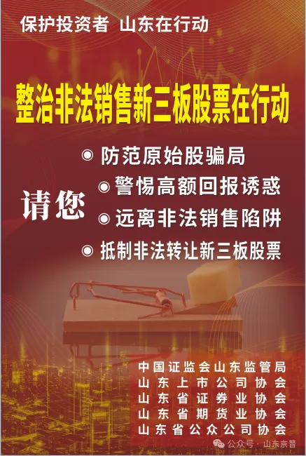 中國證監(jiān)會山東監(jiān)管局提醒您:防范原始股騙局;警惕高額回報誘惑;遠離非法銷售陷阱;抵制非法轉讓新三板股票。2024年7月,山東億嘉農(nóng)業(yè)機械裝備股份有限公司(以下簡稱“億嘉股份”)積極響應中國證監(jiān)會山東監(jiān)管局防范非法證券投資期貨宣傳活動,開展了整治非法銷售新三板股票在行動宣傳月活動。目前非法證券活動形式多、范圍廣,非法推薦股票期貨基金、股市黑嘴、場外配資、非法發(fā)行股票、非法代客理財、假冒證券公司等非法