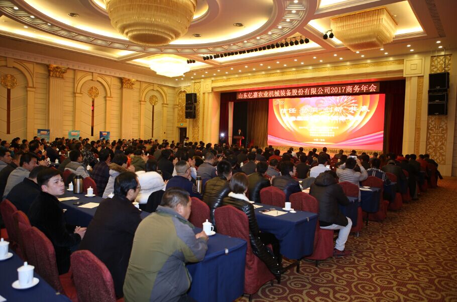 2017年1月7日,以“信任?協(xié)同?創(chuàng)新?共贏”為主題的2017年山東億嘉農(nóng)業(yè)機(jī)械裝備股份有限公司商務(wù)年會(huì)在美麗的海濱城市青島市盛大召開(kāi)。山東省農(nóng)業(yè)機(jī)械局副局長(zhǎng)韓永平、中國(guó)農(nóng)業(yè)機(jī)械流通協(xié)會(huì)副會(huì)長(zhǎng)王玉獅、山東省農(nóng)機(jī)工業(yè)協(xié)會(huì)會(huì)長(zhǎng)吳肇名、山東省農(nóng)業(yè)機(jī)械試驗(yàn)鑒定站站長(zhǎng)孟凡記、山東省農(nóng)業(yè)機(jī)械技術(shù)推廣站站長(zhǎng)竇樂(lè)智、濰坊市農(nóng)業(yè)機(jī)械管理局副局長(zhǎng)張樂(lè)洲、青島市農(nóng)機(jī)局計(jì)財(cái)處長(zhǎng)何明