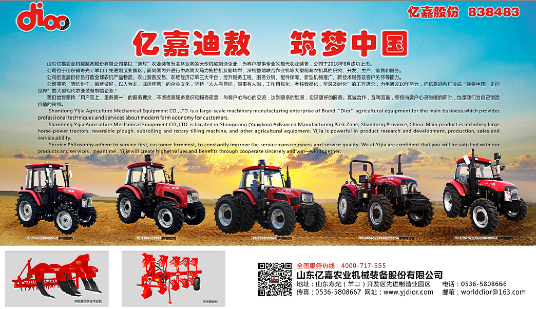 [查看更多] - 山東億嘉農(nóng)業(yè)機(jī)械裝備股份有限公司成功掛牌新三板2016-08-11